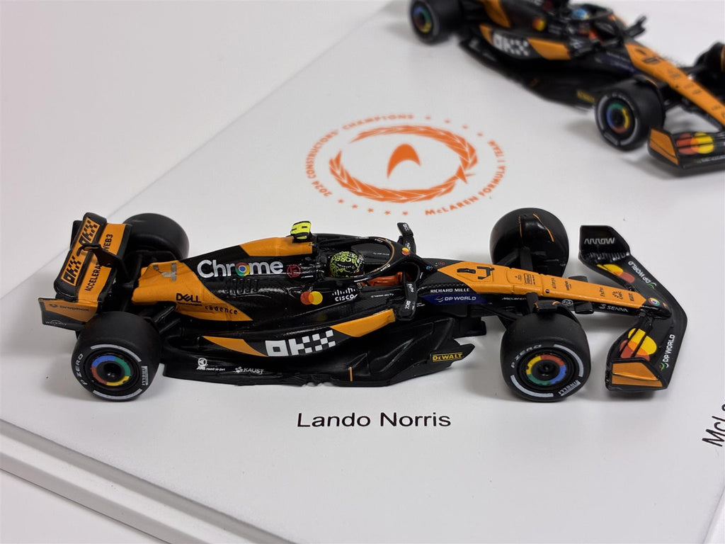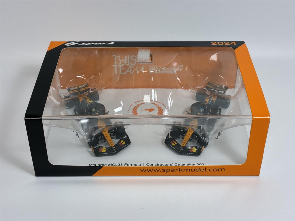 Formula 1 McLaren Team Set of 2 Cars Winner Constructor Season MCL38 2024 Norris and Piastri 1:64 Scale Spark Y418