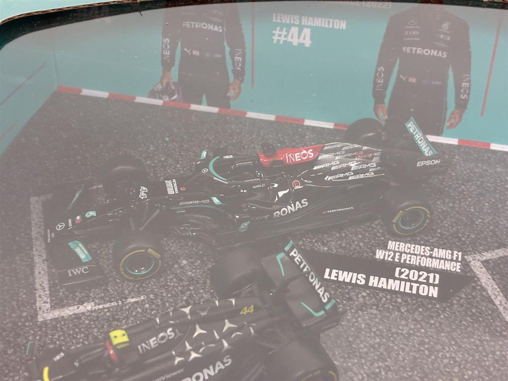 1:43 Scale 4 Car Set Includes Mercedes-AMG F1 W12 E Performance 2021 #44 Lewis Hamilton, W12 E Performance 2022 #44 Lewis Hamilton, W14 E Performance 2023 #44 Lewis Hamilton, and W14 E Performance 2023 #63 George Russell Diecast metal with plastic parts Boxed New