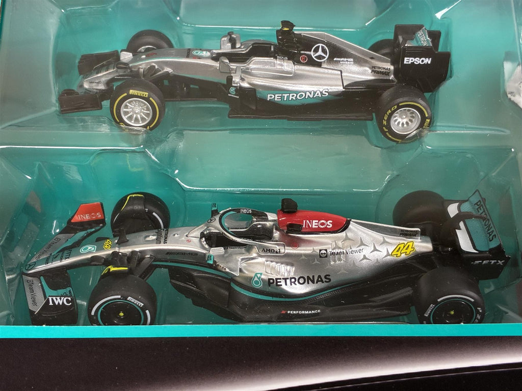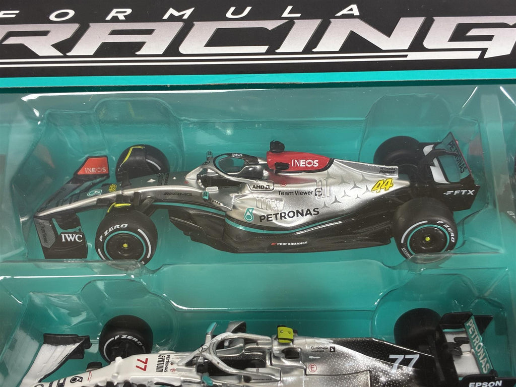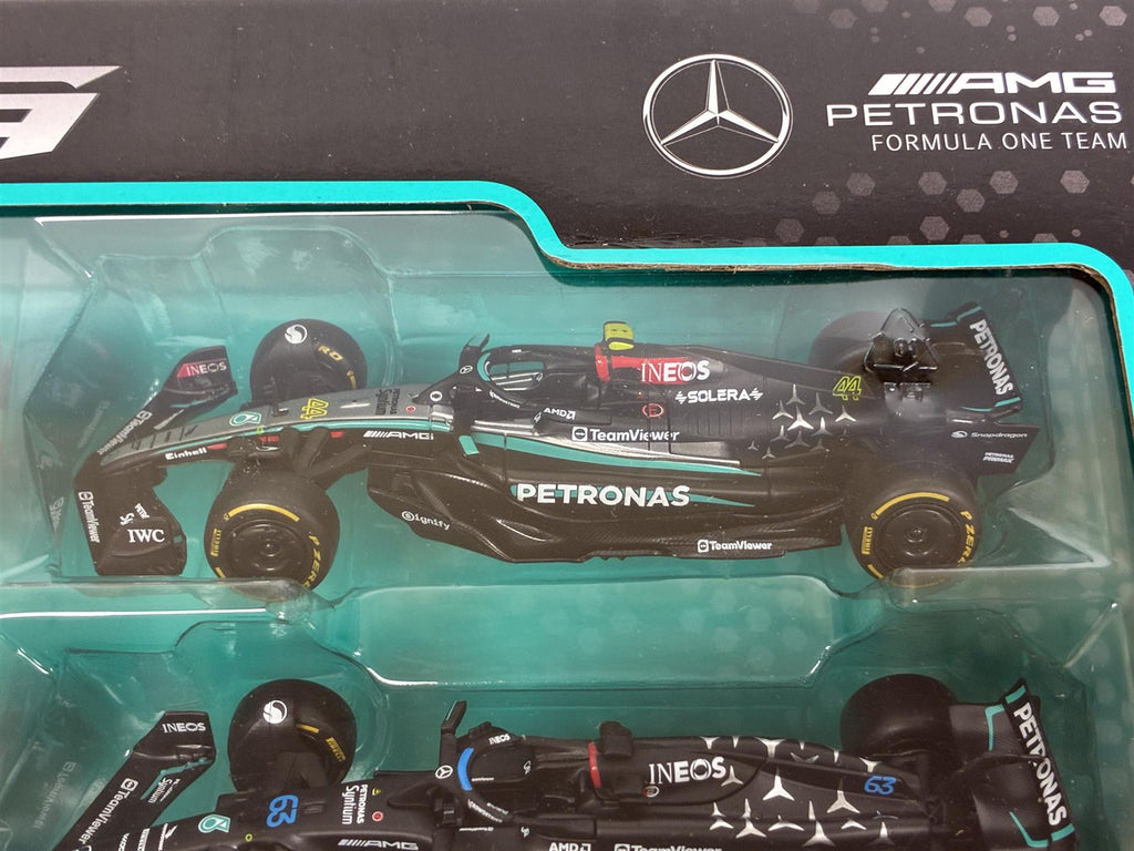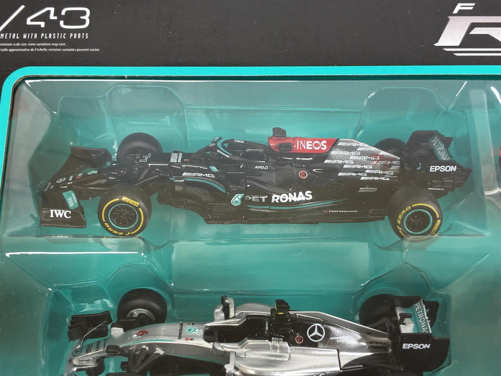Mercedes AMG Petronas Formula 1 Set of 7 Cars with Display Stand 1:43 Scale Bburago 38170