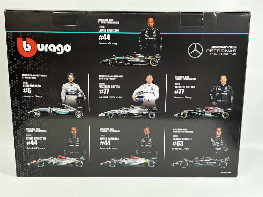 1:43 Scale Lewis Hamilton #44 2024 W15 Performance Seasonal Livery. Nico Rosberg #6 2016 W07 Hybrid Seasonal Livery. Valtteri Bottas #77 2019 W10 EQ Power+ Special White Livery. Valtteri Bottas #77 2021 W12 E Performance Seasonal Livery. Lewis Hamilton #44 2022 W13 E Performance British GP Livery. Lewis Hamilton #44 2022 W13 E Performance Seasonal Livery. George Russell #63 2023 W14 E Performance Seasonal Livery. With Plastic Display Stand Boxed New