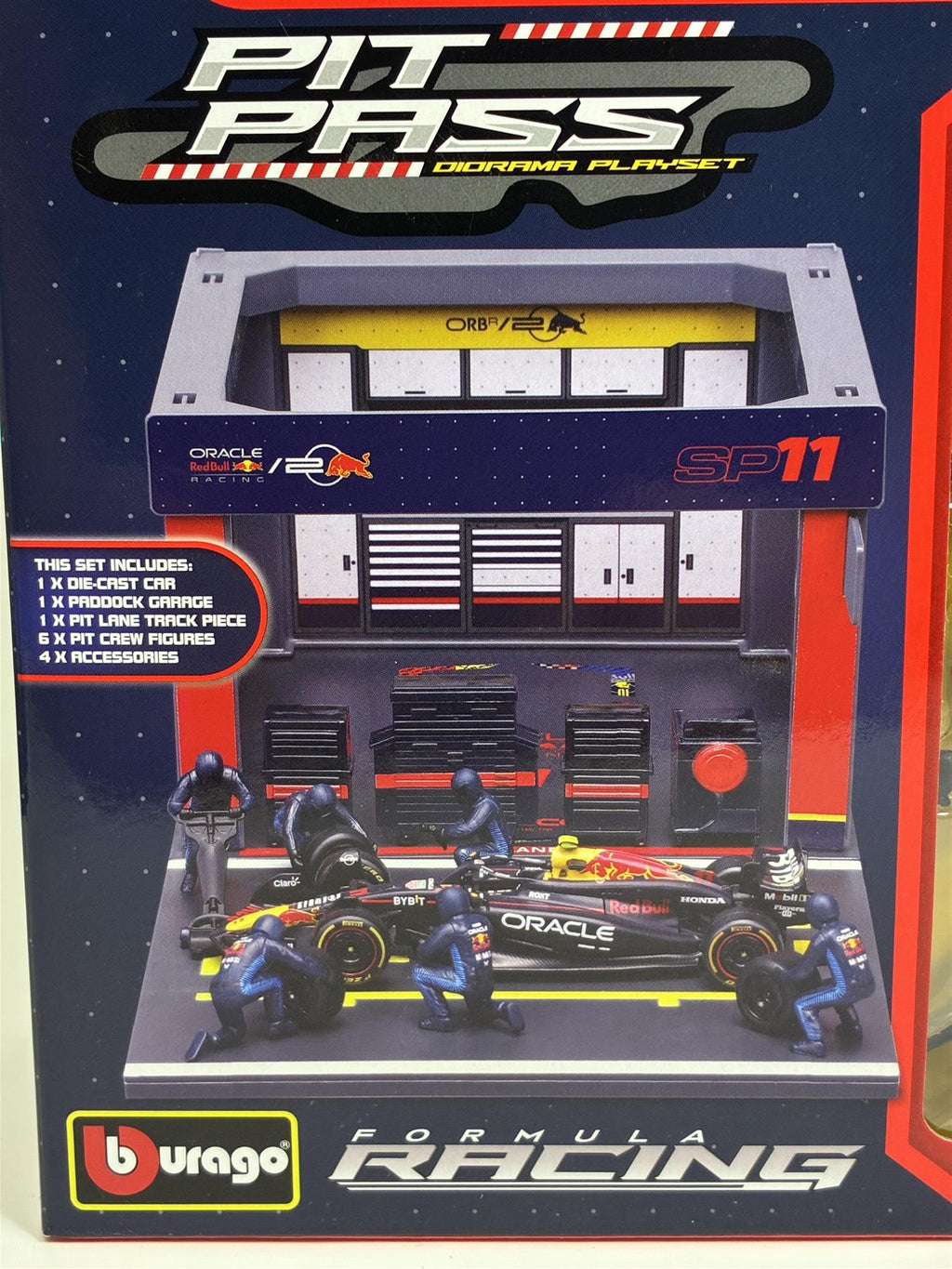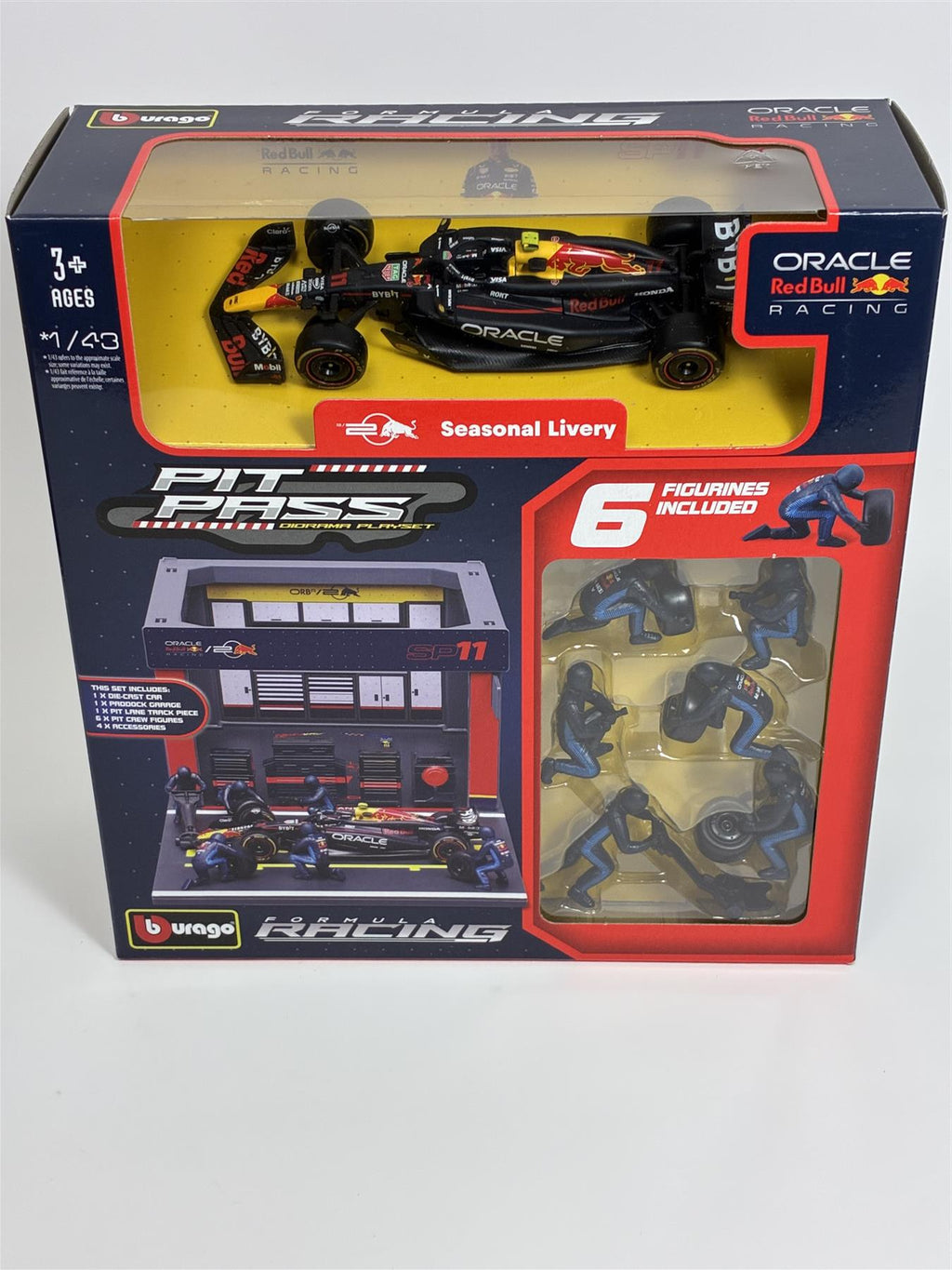 1:43 Scale Red Bull Racing Pit Pass Diorama with Sergio Perez RB20 Seasonal Livery Set Includes 1x Diecast Car, 1x Paddock Garage, 1x Pit Lane Track Piece, 6x Pit Crew Figures and 4x Accessories Boxed New