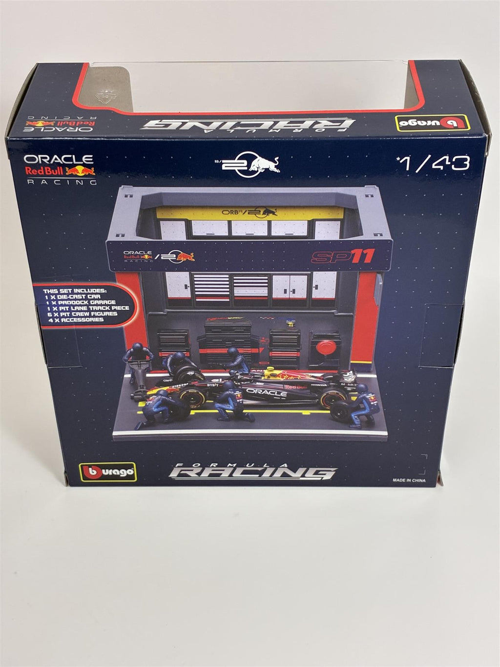 Sergio Perez #11 Red Bull Pit Pass Diorama with RB20 1:43 Bburago 38453P
