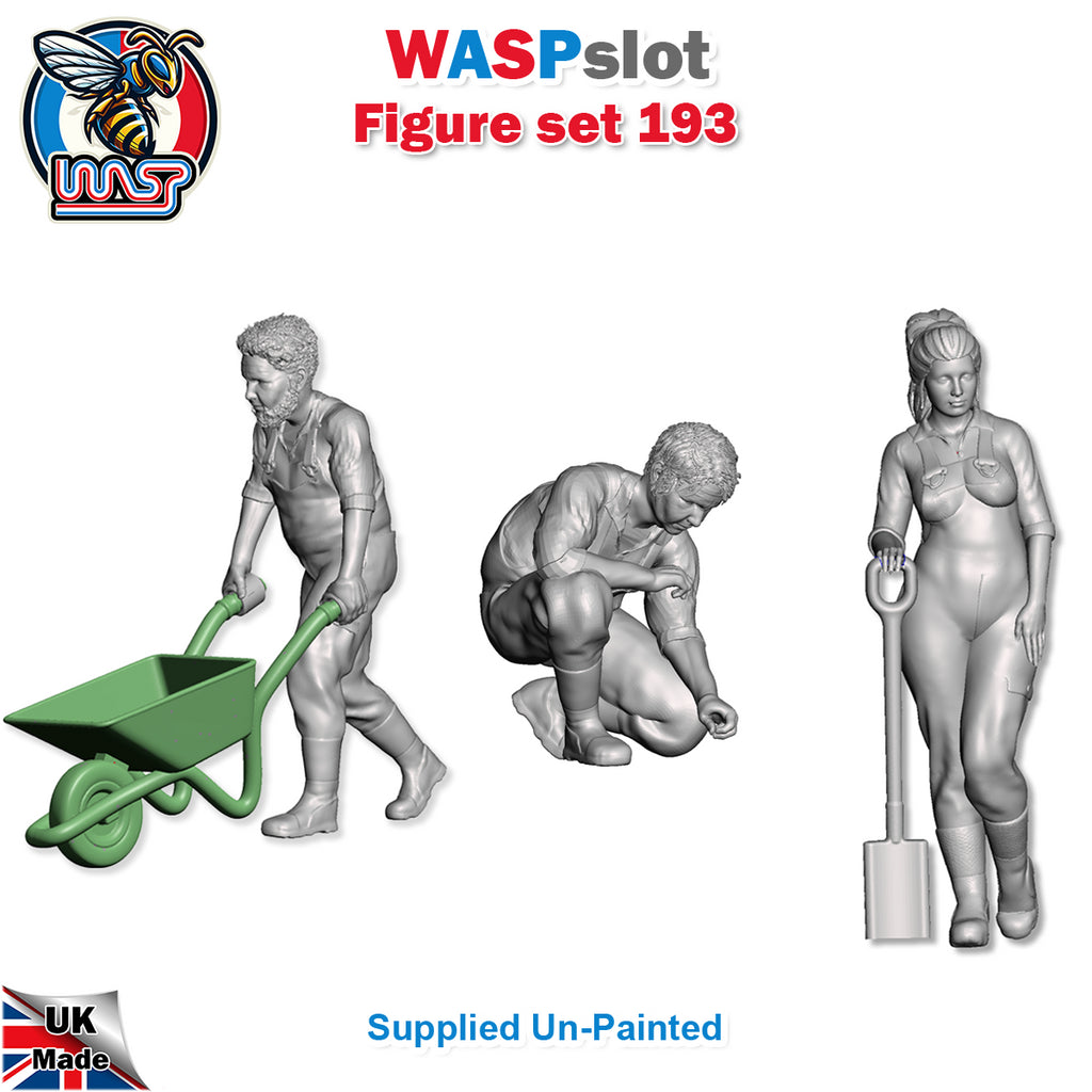Trackside Unpainted Figures Scenery Display 3 x Gardeners Set 193 New 1:32 Scale Wasp