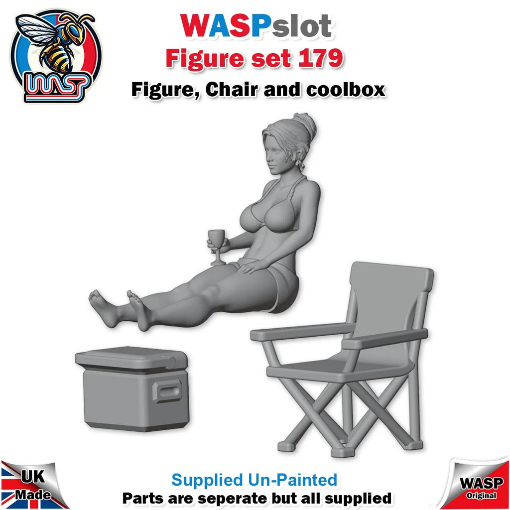 Trackside Unpainted Figures Scenery Display 1 x Woman Lounging with Cool Box Set 179 New 1:32 Scale Wasp
